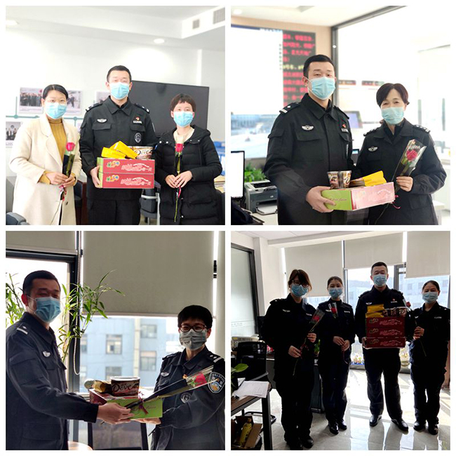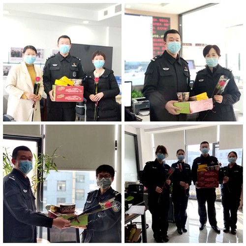 为了表示对我们大队女性工作者们的关心和感谢,2020年3月6日上午,巡(特)警大队领导提前将鲜花和小礼品一一送到每一位女民警、辅警和物业人的手中,并向她们表示感谢和节日的问候。